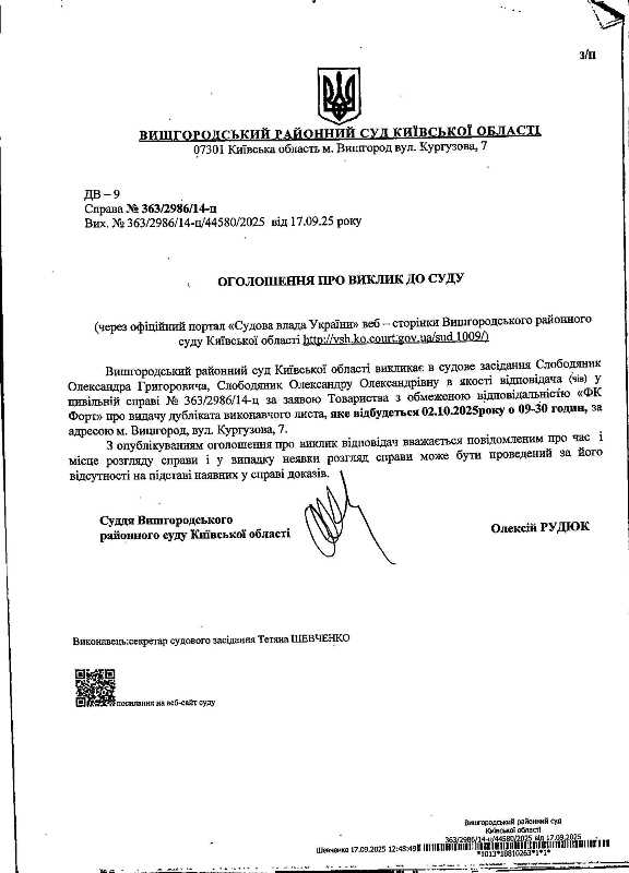 Оголошення про виклик до суду у справі № 363/2986/14-ц