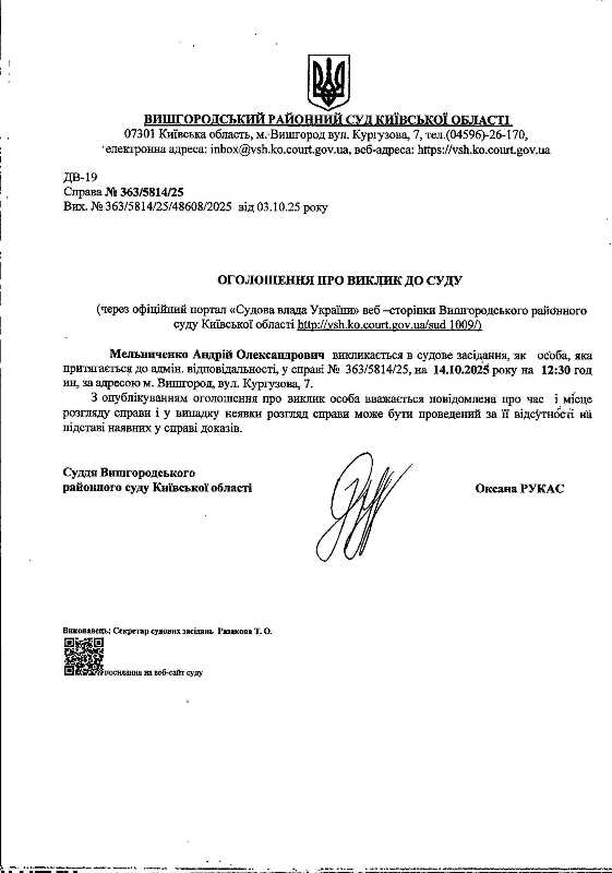 Оголошення про виклик до суду у справі № 363/5814/25