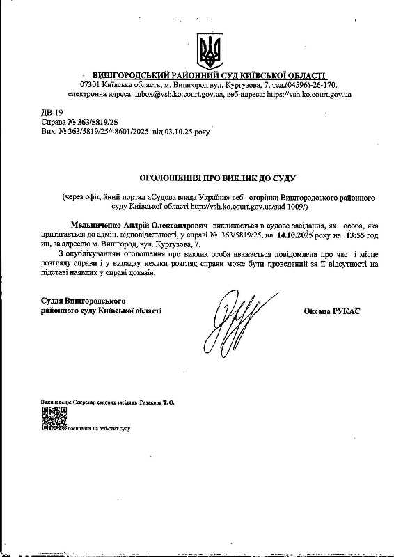 Оголошення про виклик до суду у справі № 363/5819/25
