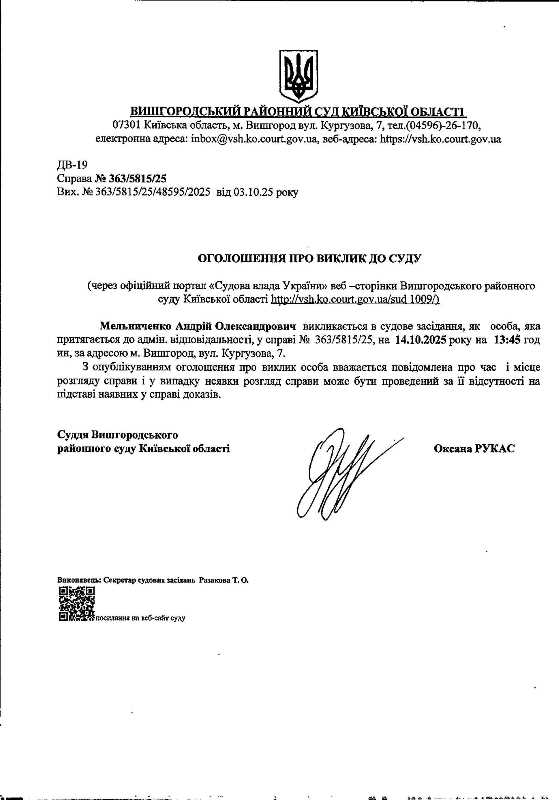 Оголошення про виклик до суду у справі № 363/5815/25