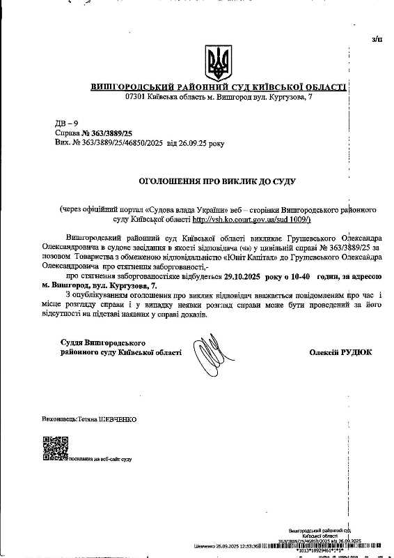 Оголошення про виклик до суду у справі № 363/3889/25