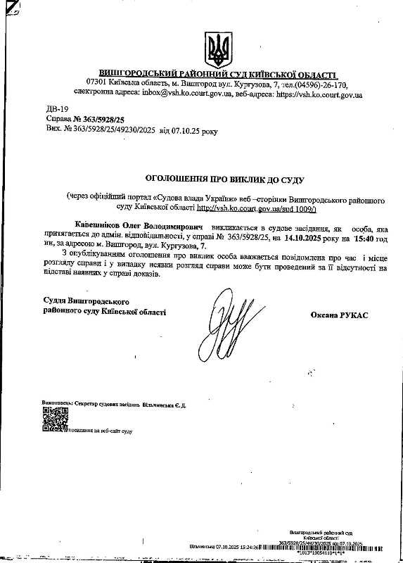 Оголошення про виклик до суду у справі № 363/5928/25