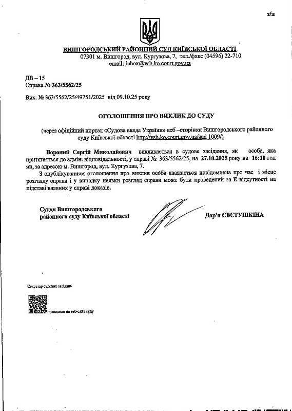 Оголошення про виклик до суду у справі № 363/5562/25