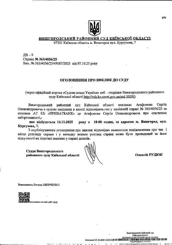 Оголошення про виклик до суду у справі № 363/4056/25