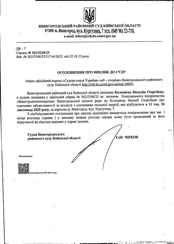 Оголошення про виклик до суду у справі № 363/5248/25