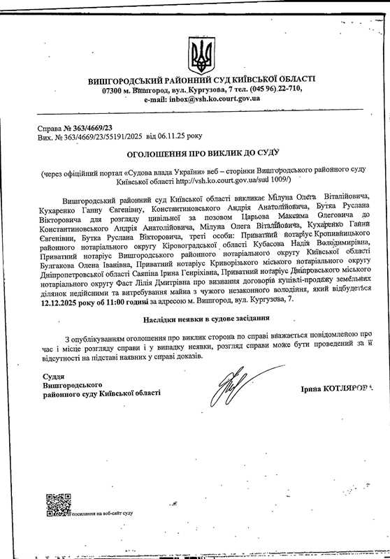 Оголошення про виклик до суду у справі № 363/4669/23