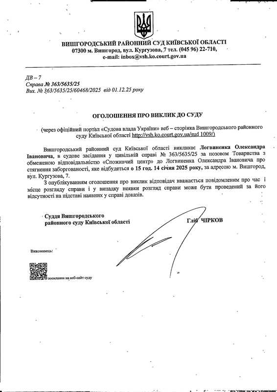 Оголошення про виклик до суду у справі № 363/5635/25
