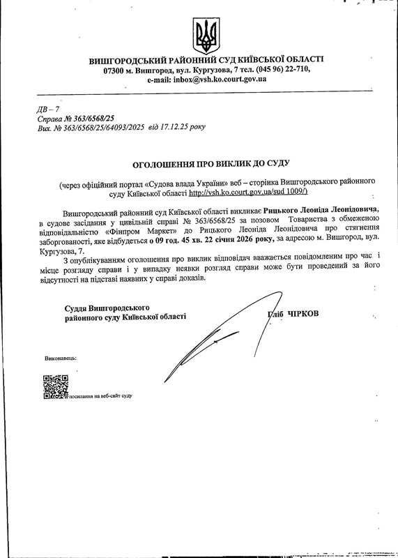 Оголошення про виклик до суду у справі № 363/6568/25