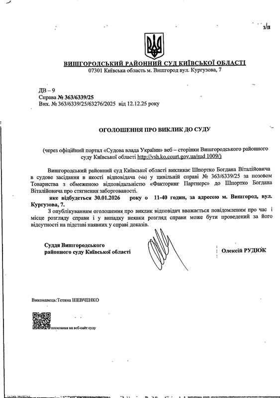 Оголошення про виклик до суду у справі № 363/6339/25