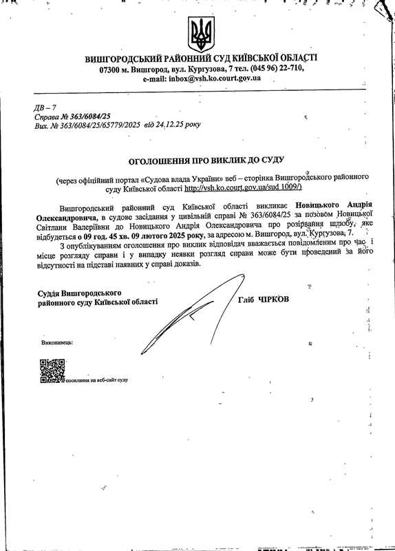 Оголошення про виклик до суду у справі № 363/6084/25