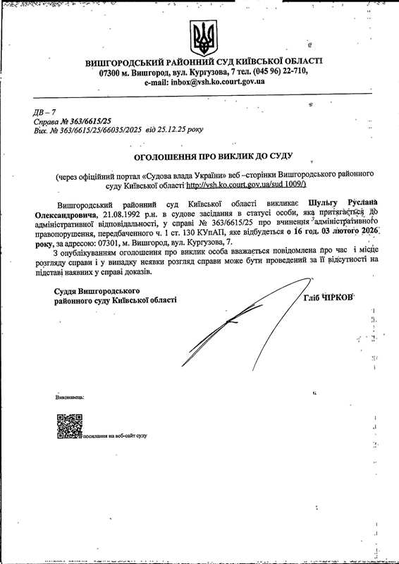 Оголошення про виклик до суду у справі № 363/6615/25