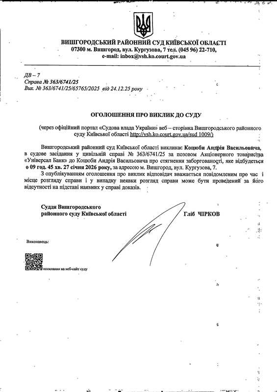 Оголошення про виклик до суду у справі № 363/6741/25