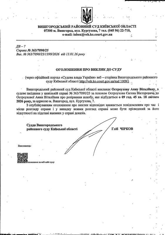Оголошення про виклик до суду у справі № 363/7090/25