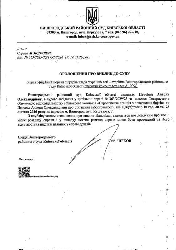 Оголошення про виклик до суду у справі № 363/7029/25
