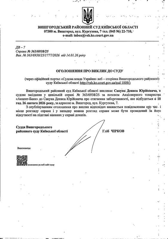 Оголошення про виклик до суду у справі № 363/6938/25