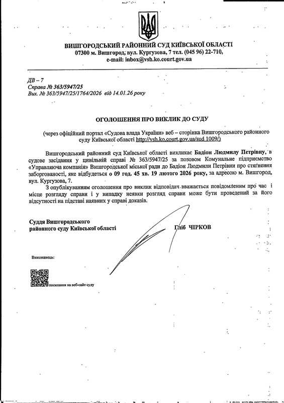 Оголошення про виклик до суду у справі № 363/5947/25