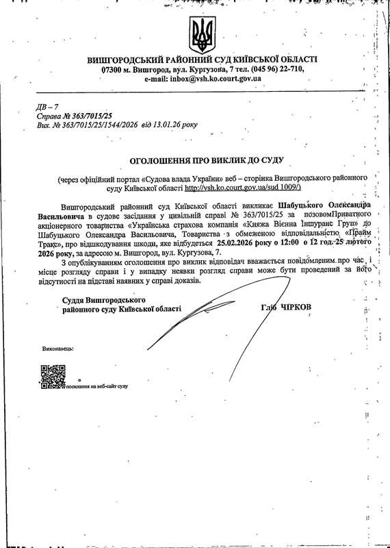 Оголошення про виклик до суду у справі № 363/7015/25