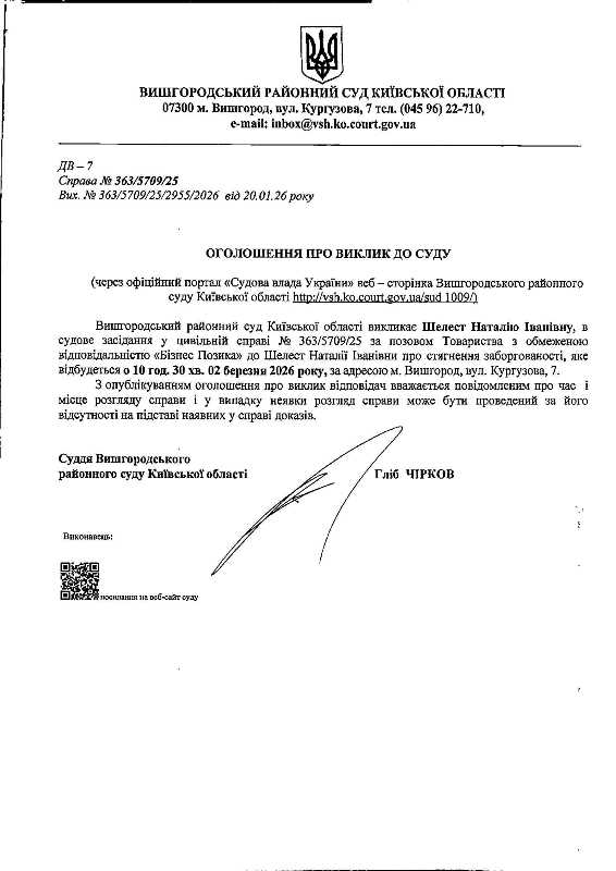 Оголошення про виклик до суду у справі № 363/5709/25