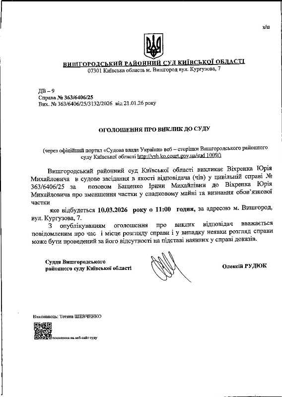 Оголошення про виклик до суду у справі № 363/6406/25