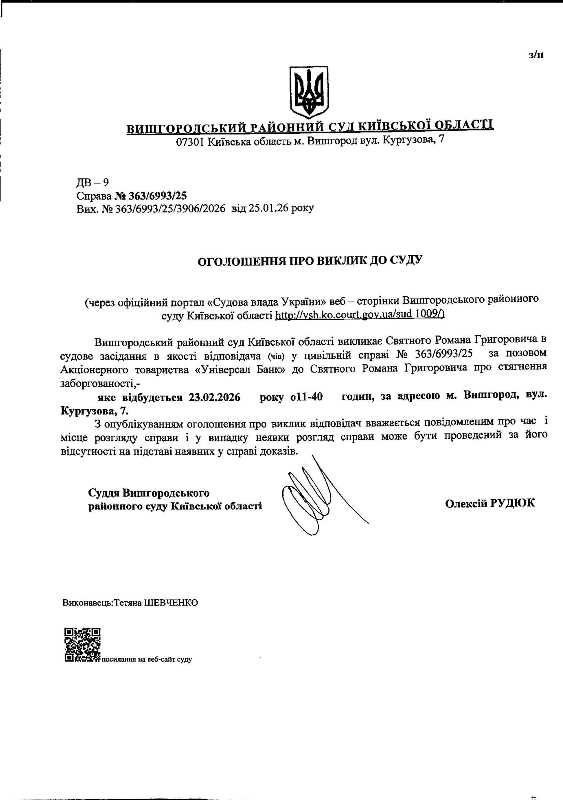 Оголошення про виклик до суду у справі № 363/6993/25