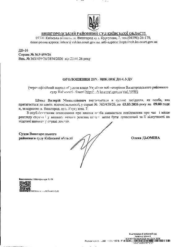 Оголошення про виклик до суду у справі № 363/459/26