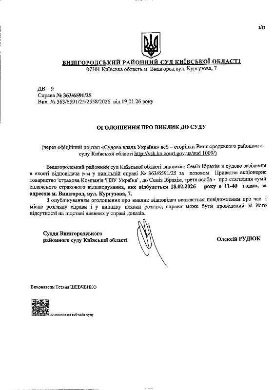 Оголошення про виклик до суду у справі № 363/6591/25