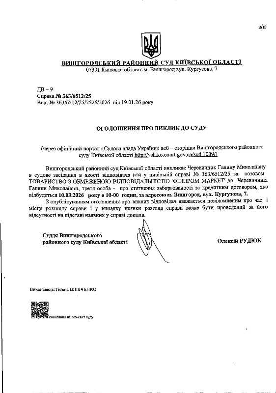 Оголошення про виклик до суду у справі № 363/6512/25
