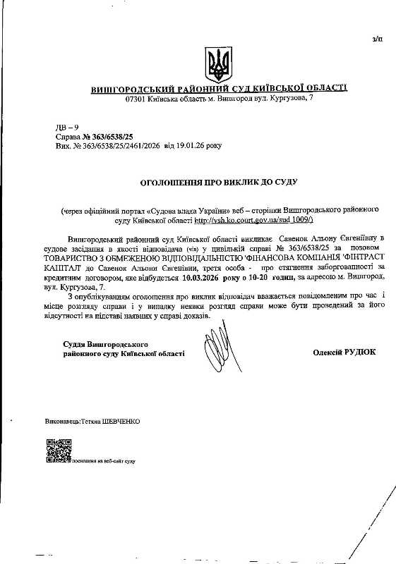 Оголошення про виклик до суду у справі № 363/6538/25