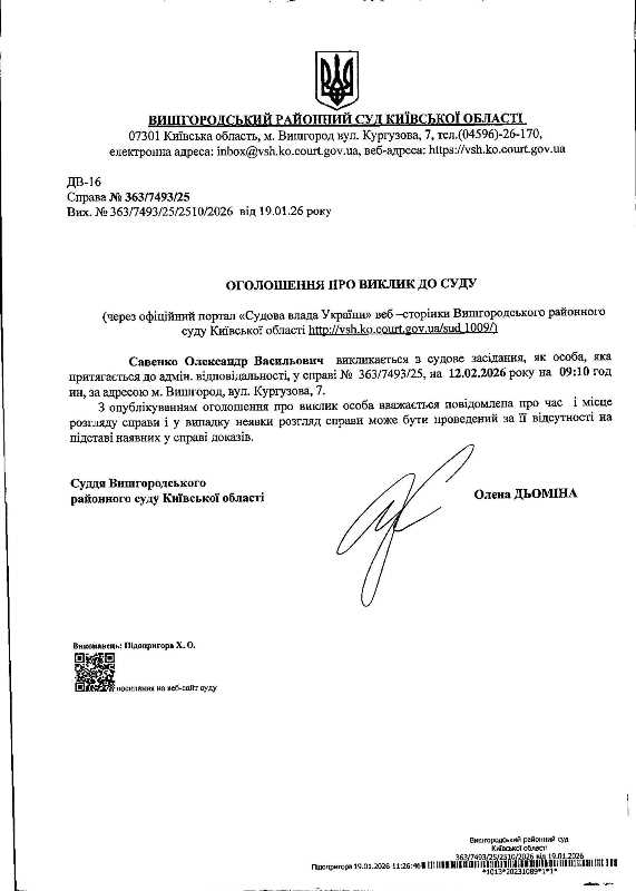 Оголошення про виклик до суду у справі № 363/7493/25
