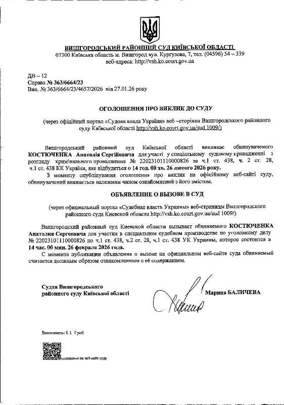 Оголошення про виклик до суду у справі № 363/6664/23