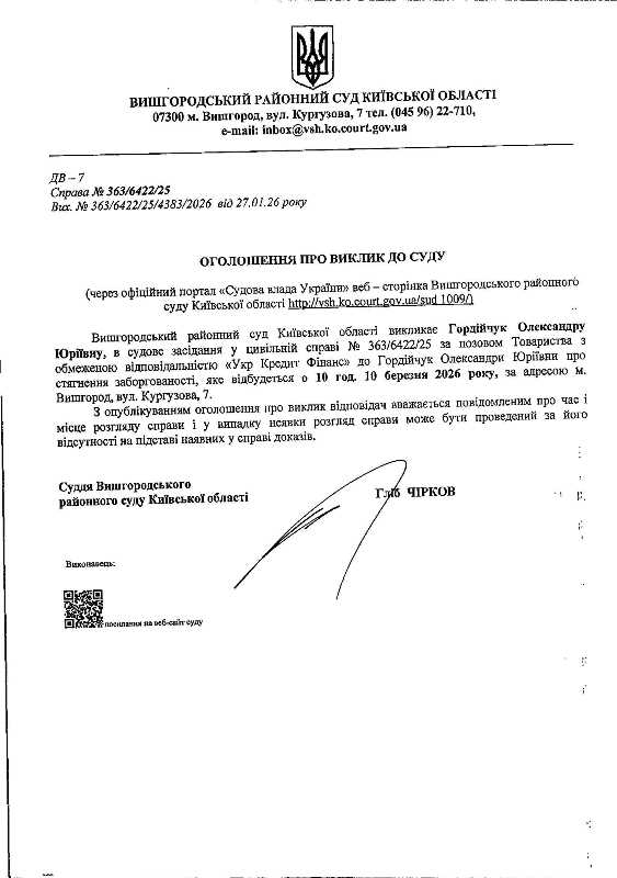 Оголошення про виклик до суду у справі № 363/6422/25