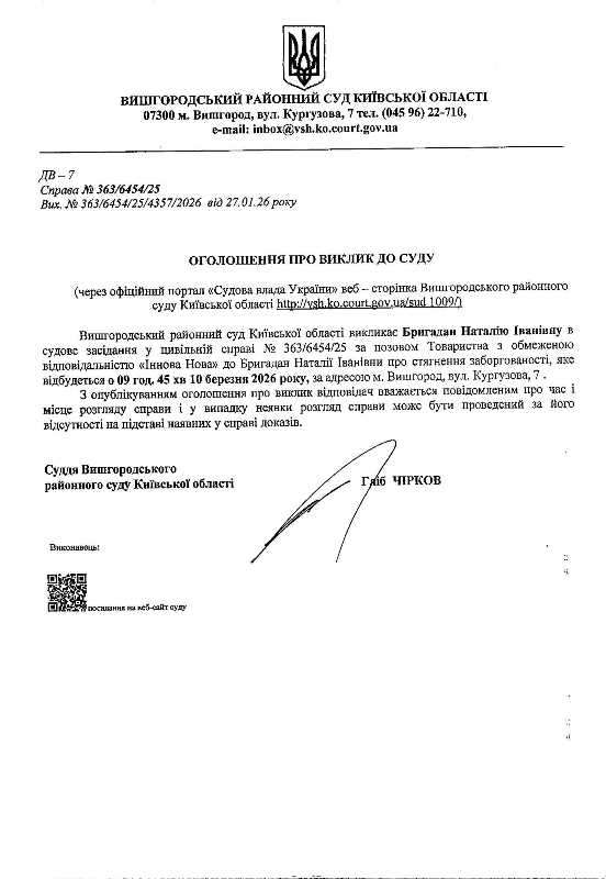 Оголошення про виклик до суду у справі № 363/6454/25