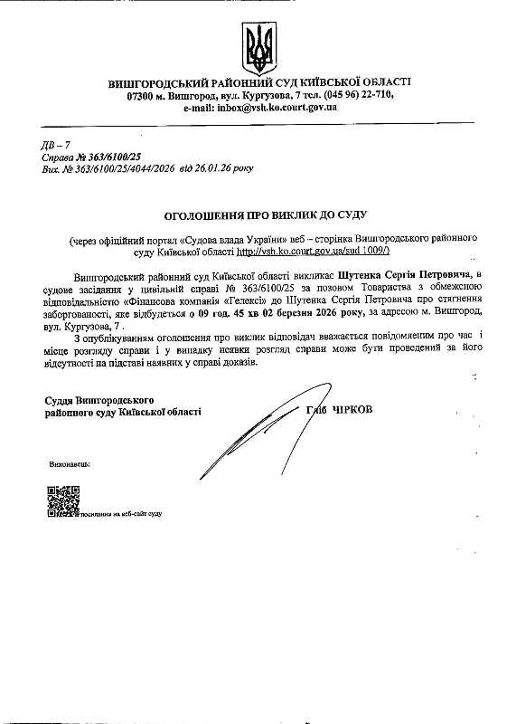Оголошення про виклик до суду у справі № 363/6100/25
