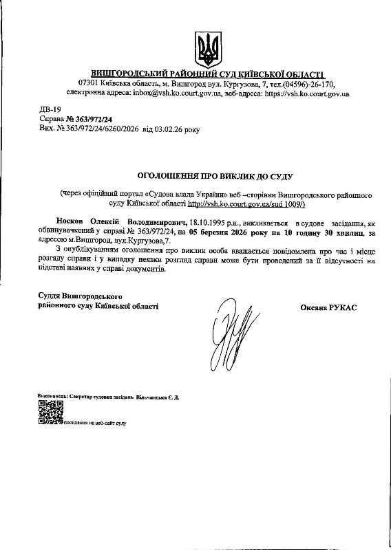 Оголошення про виклик до суду у справі № 363/972/24