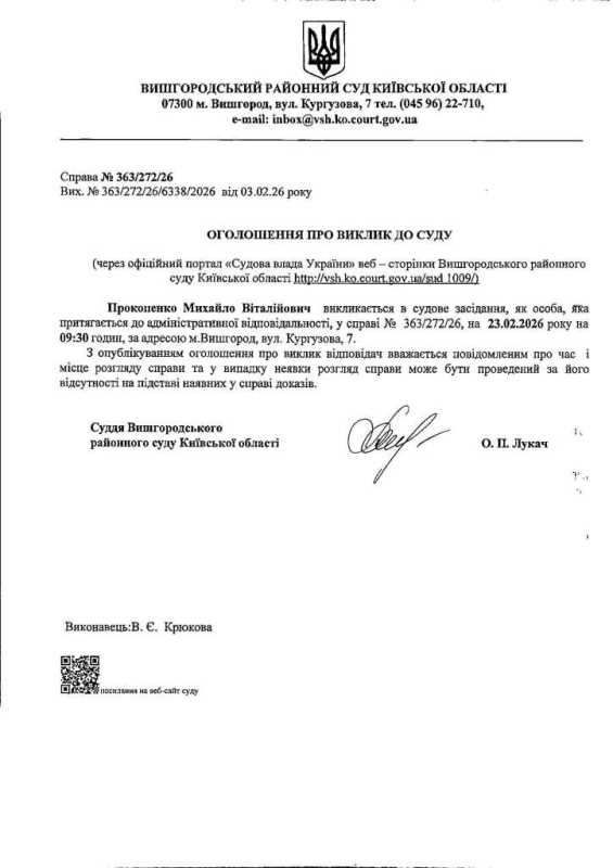 Оголошення про виклик до суду у справі № 363/272/26