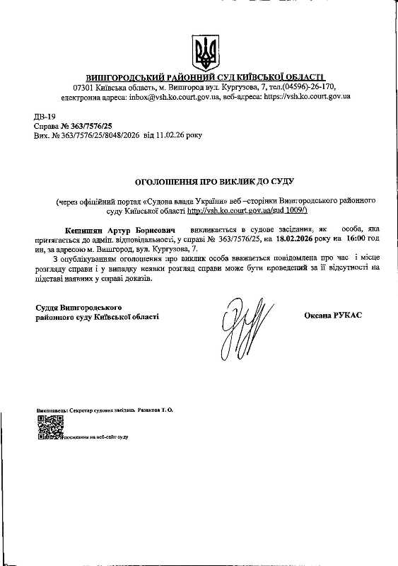 Оголошення про виклик до суду у справі № 363/7576/25