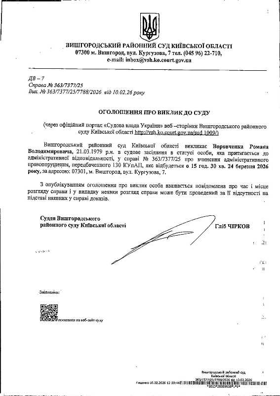 Оголошення про виклик до суду у справі № 363/7377/25