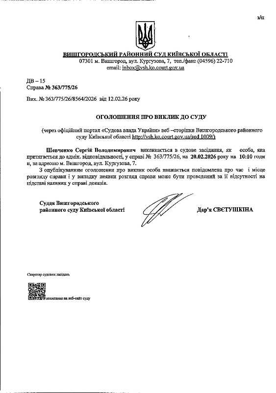Оголошення про виклик до суду у справі № 363/775/26