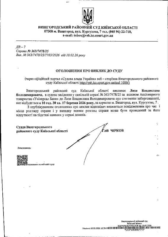 Оголошення про виклик до суду у справі № 363/7478/25