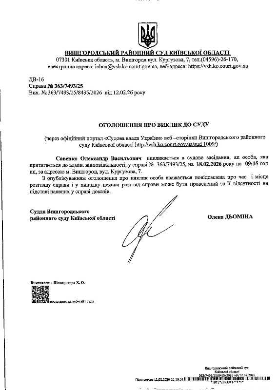 Оголошення про виклик до суду у справі № 363/7493/25