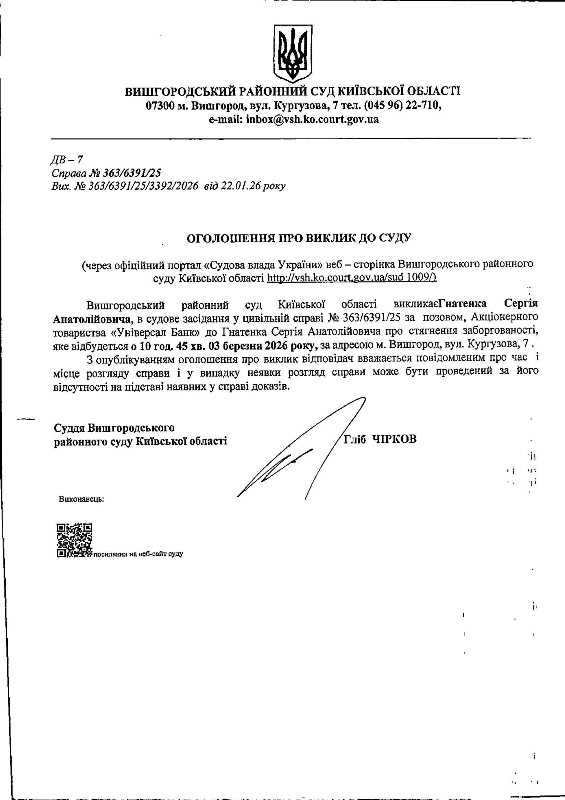 Оголошення про виклик до суду у справі № 363/6391/25