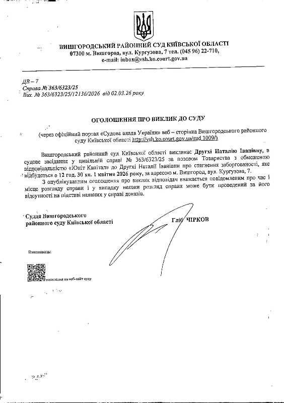 Оголошення про виклик до суду у справі № 363/6323/25