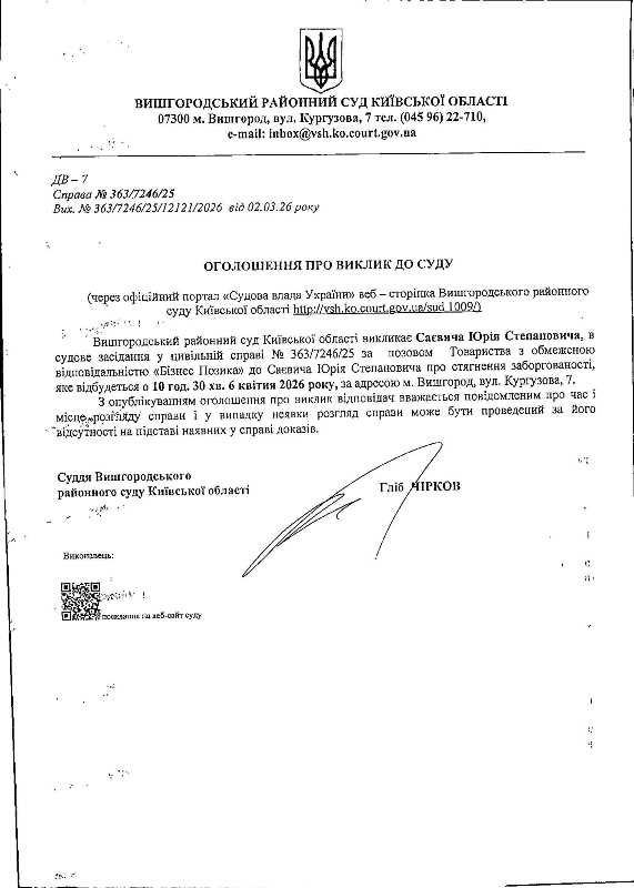 Оголошення про виклик до суду у справі № 363/7246/25