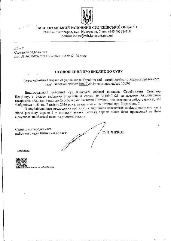 Оголошення про виклик до суду у справі № 363/6401/25