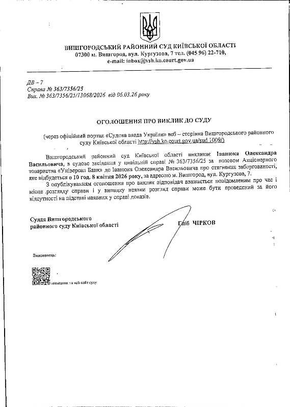 Оголошення про виклик до суду у справі № 363/7356/25