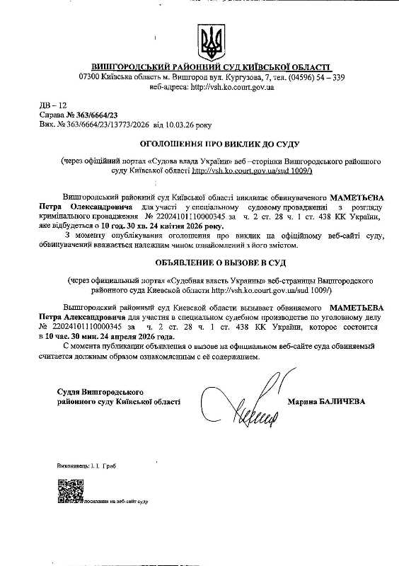 Оголошення про виклик до суду у справі № 363/6664/23