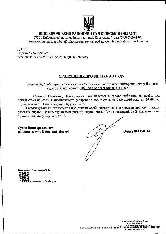 Оголошення про виклик до суду у справі № 363/7579/25