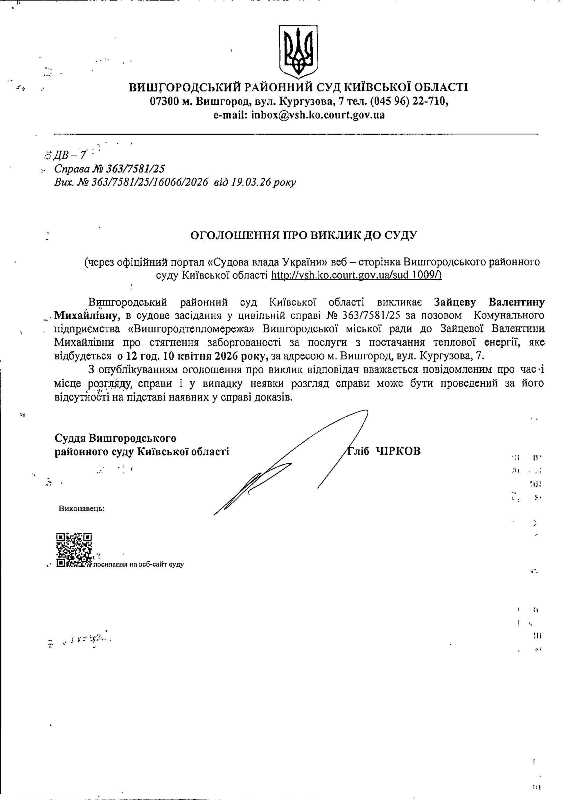 Оголошення про виклик до суду у справі № 363/7581/25