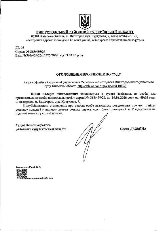 Оголошення про виклик до суду у справі № 363/459/26