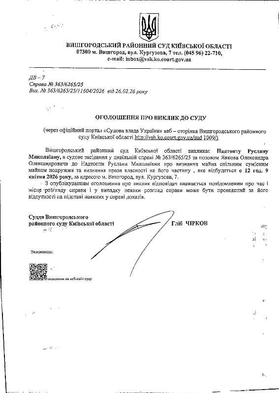 Оголошення про виклик до суду у справі № 363/6265/25